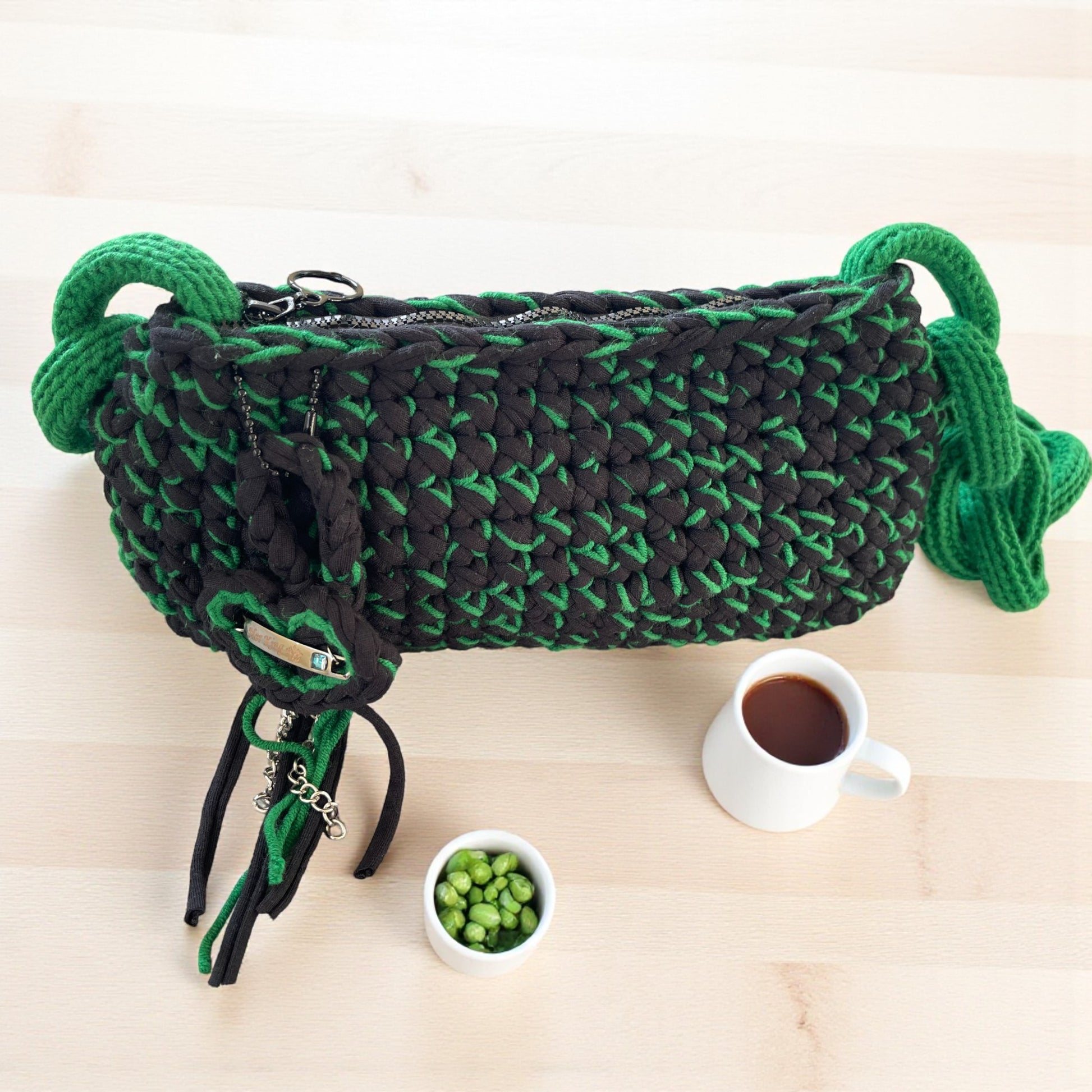Handmade Crochet Chain Shoulder Bag – Modern Trendy Style with Secure Zipper Closure