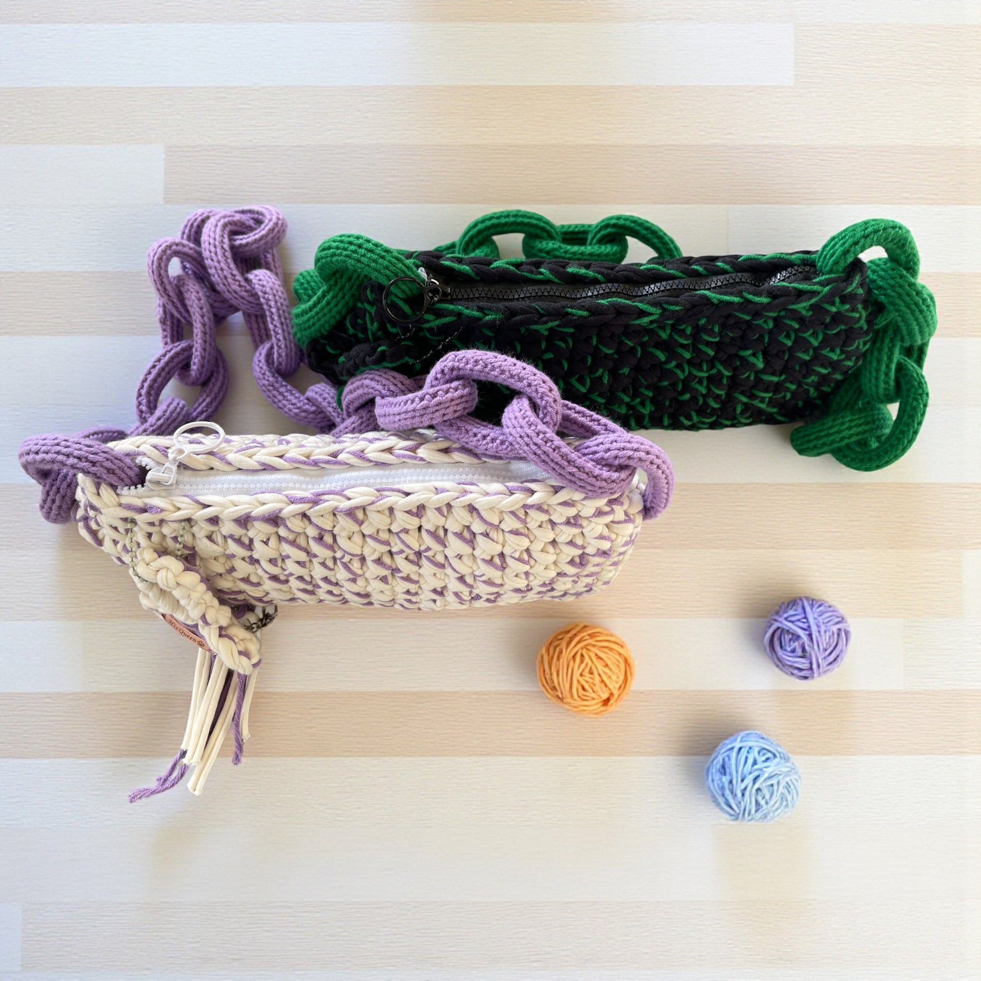 ü Design: Hand-crocheted body with a modern chunky chain strap