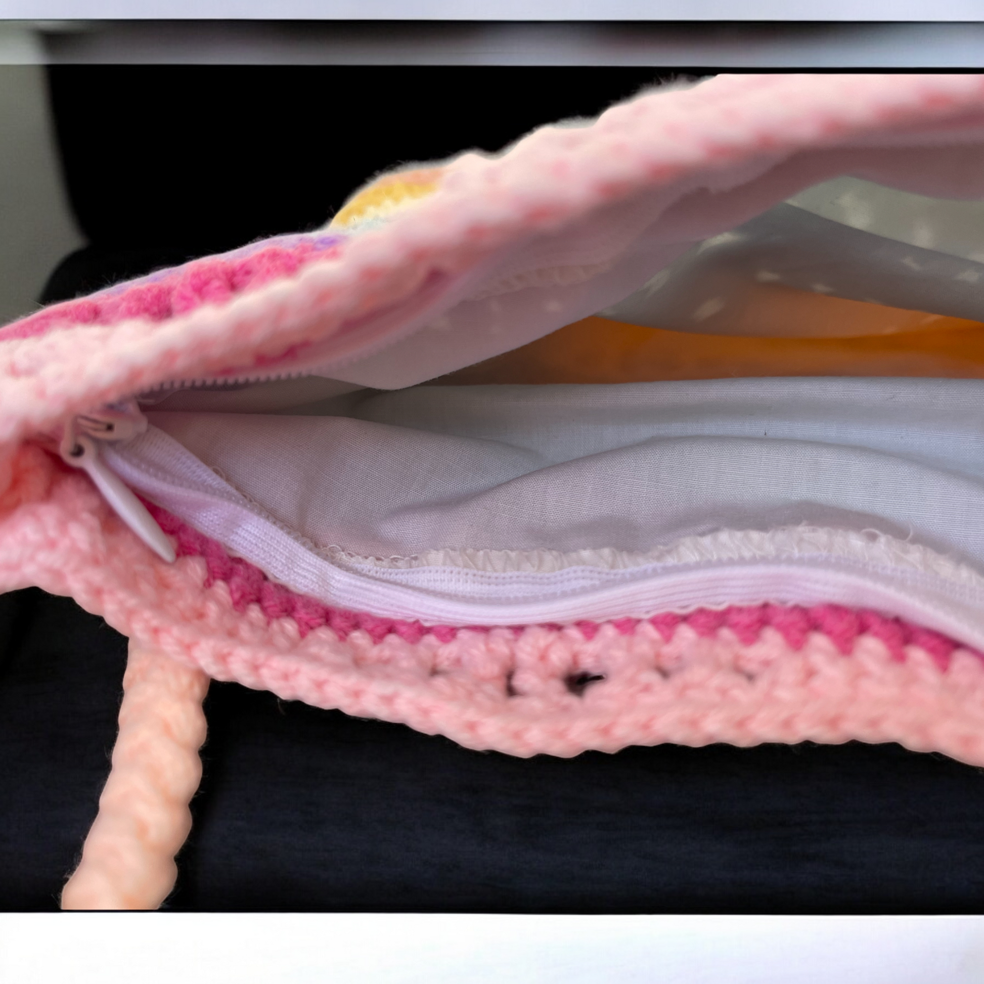 Handmade Crochet Rainbow Wave Bag | Lined & Zippered Crossbody | 2 Styles Available