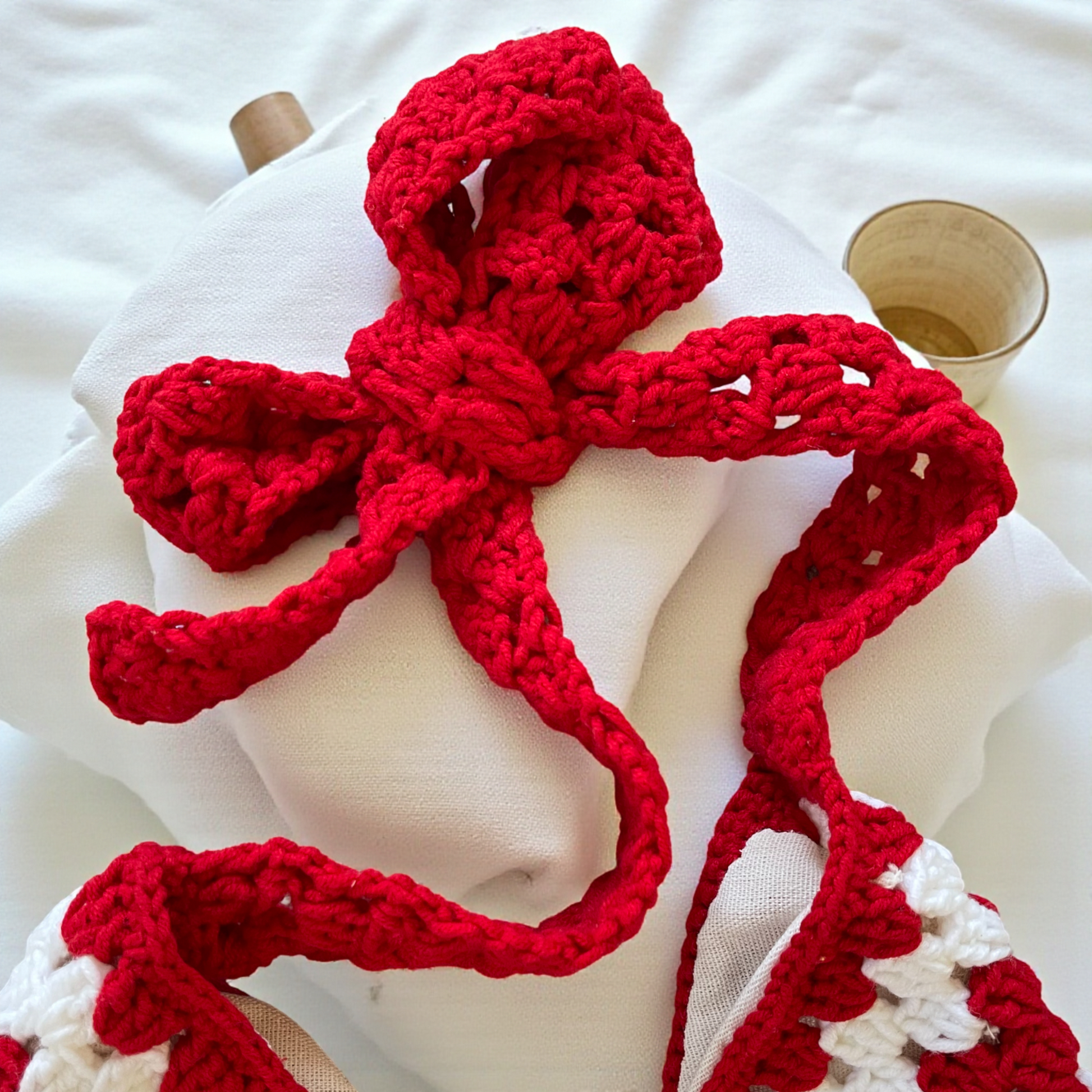 Red & White with a Hint of Pink: Approx. 23cm (W) × 22cm (H), 47cm total length