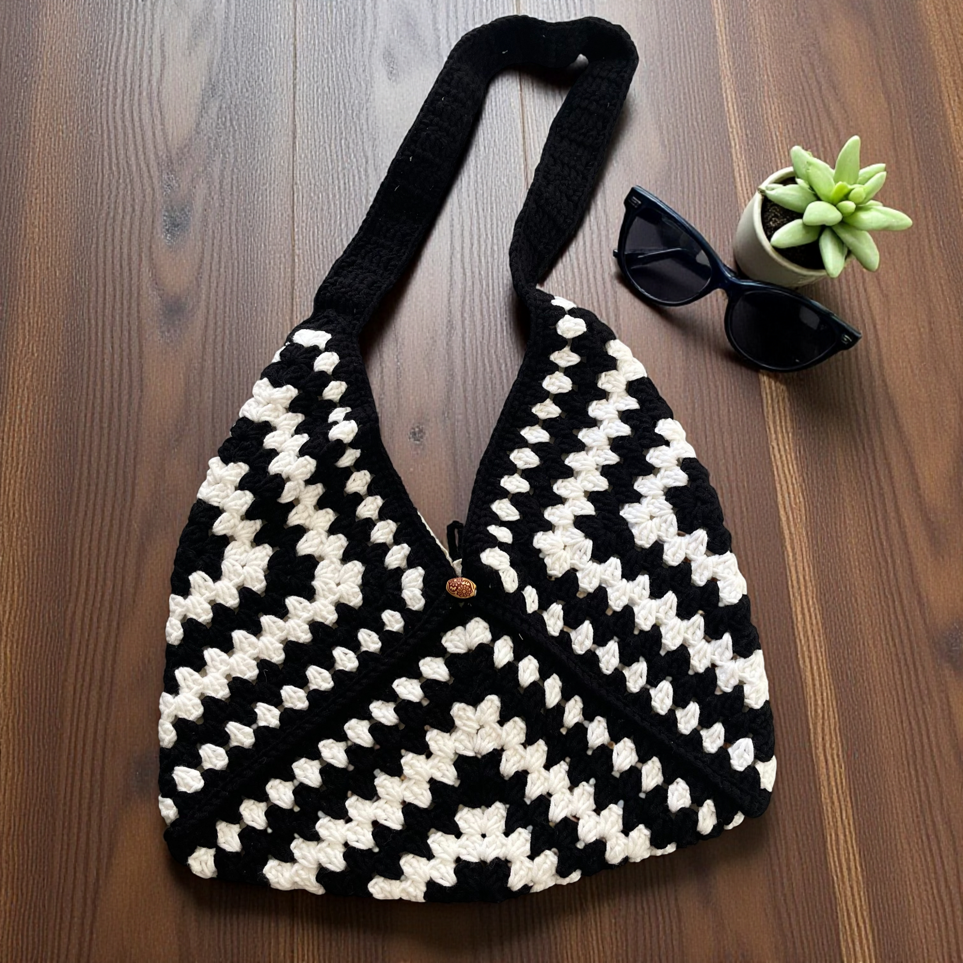 Handmade Crochet Shoulder Bags with Granny Square Details – Lined & Button Closure
